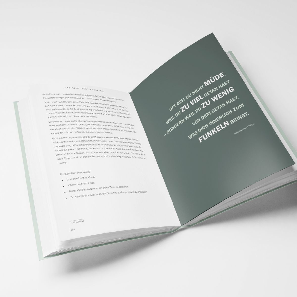 Ein Erlebnisbuch, das Herz, Sinne und Seele anspricht. Mit Reflexionsfragen, Impulsen und praktischen Übungen. Künstlerische Illustrationen und Bilder unterstreichen die Inhalte, während passende Musik über QR-Codes aufgerufen werden kann.